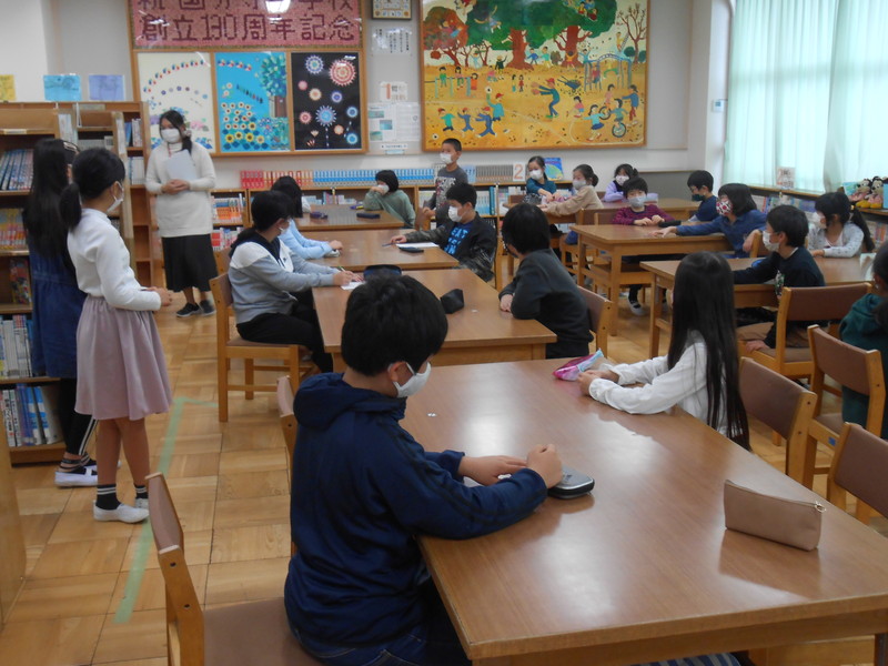 今回は、国分寺中学校の1、2年生16名が、1年生〜5年生の各学級で読み聞かせを行ってくれました。中学生は、事前に「むくの木」の皆様から、読み聞かせのアドバイスをいただき、本を選んだり練習したりして準備してくれました。実際の読み聞かせは、どの中学生も、落ち着いて、上手に読んでくれました。小学生も、いつもと違う中学生の読み聞かせに、真剣に聞き入っていました。
