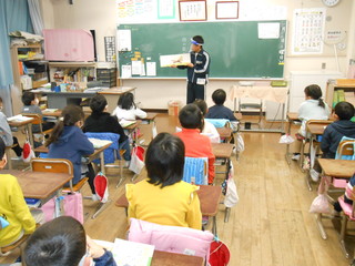 10月14日(水)に、スクールガードリーダーの方が来校され、校内放送で交通安全に関するお話をしていただきました。