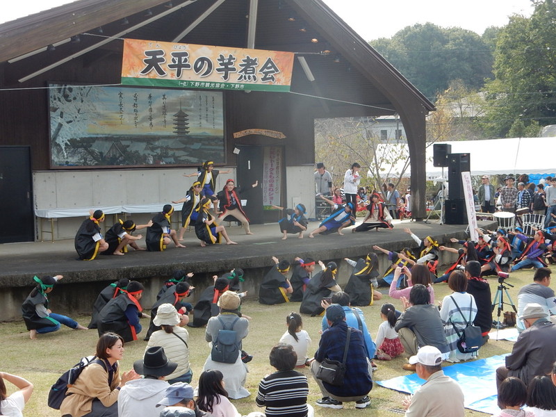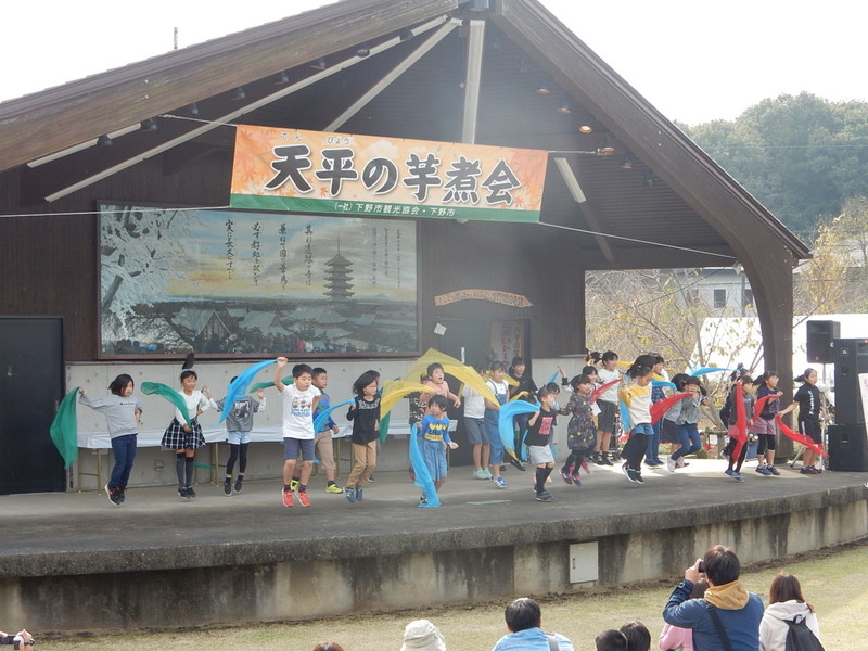 11月3日(日)に、下野市天平の丘公園で行われた「天平の芋煮会ふれあいコンサート」に、今年も本校児童約120名が参加しました。毎年恒例の、運動会で発表した表現運動(ダンスやソーラン)を披露しました。