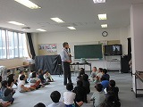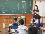 第二中の理科の先生が来てくださり、授業を行ってくださいました。まず最初に3年1組の理科の授業を参観していただきました。お兄さんお姉さんとつながりがある人もいて初めてお会いする先生ですが、すぐに仲良しの気持ちになりました。一生懸命に取り組んでいる姿をみてもらうことができました。3,4時間目は6年生に授業をしていただきました。先生はこの日のためにミジンコをとってきてくれました。ビンをのぞくと小さな小さなミジンコの姿を確認することができました。班ごとに顕微鏡で細かく観察します。元気に動くミジンコの姿をはっきりと観察できて、子供たちから歓声があがりました。子供たちはすぐに先生と打ち解けて、質問したり自分の考えを伝えたりしながら楽しく真剣に学んでいました。とても貴重な経験になりました。