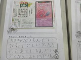 「好きな授業は何ですか」という質問に「道徳」と答える子も多くいます。道徳の時間は読み物などの資料を通して、自分の心と向き合い考えを深める時間です。今日の2時間目、2年生は道徳の時間でした。「つくえふき」という資料を通して「なかのよさでこうどうをかえること」について考える内容でした。子供たちは登場人物の気持ちを自分の行動や考えと照らしながら、真剣に考えていました。お友達の意見に、「そうそう」とうなずいたり「それってどういうこと?」ともっと聞きたいと説明を求めたり。子供たちの言葉や意見がつながってが子供たちの考えが深まっていくのが伝わってきました。始めは何も書かれていなかった黒板が授業が進むにつれて、子供たちの意見でいっぱいになりました。主人公「ゆうたくん」にお手紙を書く活動で自分で考えたことを整理しまとめることができました。最後に担任の先生が小学校の頃に経験したお話を聞いて、今日の学習を温かい気持ちで振り返ることができた様子でした。学校課題「聞いて考える力」につながる子供たちの姿でした。
