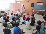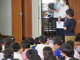 今日は低ブロックの教室に読み聞かせのボランティアの方が来てくださいました。身を乗り出して聞き入っています。「わーすごい。だんだん早口になってる」「知ってるお話だ」にこにこ目が輝きます。聞いて感じたことが素直な言葉で出てきます。絵本を通して手遊びやクイズも楽しみました。緑小の子供たちは本が大好きです。