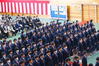体育館において始業式を行いました。校長から「Choice(選択)」と「Challenge(挑戦)」についてと「昨日より今日の自分、今日の自分より明日の自分と新たな自分をつくりあげてほしい。自分の人生自分らしくあるために自分で選び挑戦し、悔いのない生活を送って欲しい」「笑顔いっぱいの南河内第二中にしていきましょう」という話をしました。代表生徒が「充実した生活を送りたい」「目標に向かって後悔なく1年を過ごしたい」と決意を伝えてくれました。学級担任名等と部活動顧問の紹介、校歌合唱も行いました。新しい学年、新しい先生との出会いに、生徒たちは少しの緊張感とわくわく感に、目がキラキラしていました。教科書を配られ、午前中で帰宅しました。